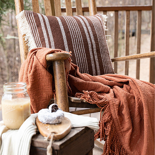 You’ll be transported to a world of comfort and relaxation, where every detail has been thoughtfully curated to create a cohesive aesthetic that’s both inviting and stylish. The use of natural materials such as wood, grass, stone, and cotton infuses the space with warmth and texture. From the retro plaids and cozy pillows to the hand carved wood and accents inspired by nature, every piece has been carefully selected to evoke a sense of rustic charm and tranquility.